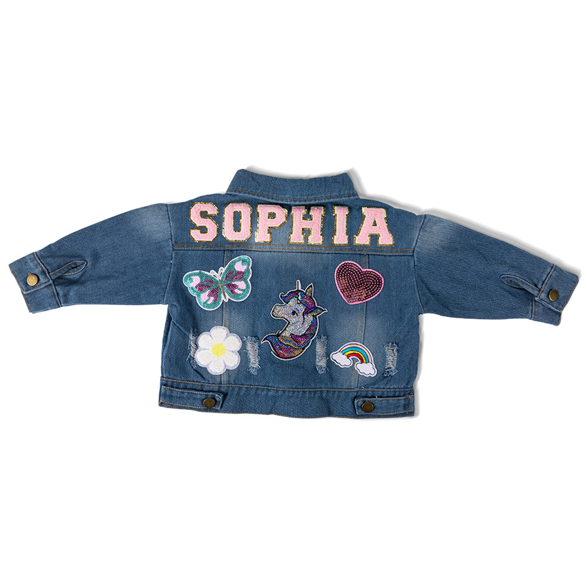 | Style | Personalized Chenille Letter Patch Jean Jacket |